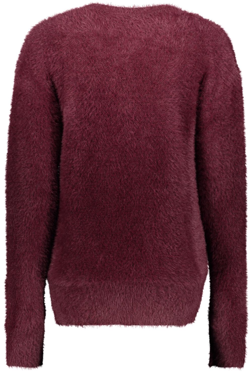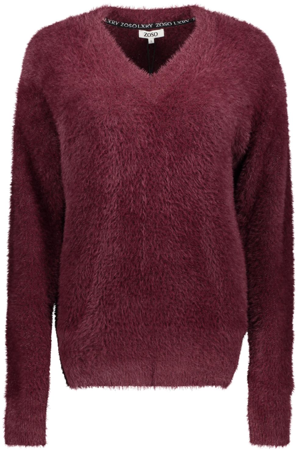 Ervaar de knusse warmte van deze Zoso damestop, een prachtige bordeauxrode trui uit de collectie knitwear. Met zijn stijlvolle V-hals en lange mouwen is deze trui ideaal voor koude winterdagen. De zachte stof is subtiel versierd met glitters, wat een verfijnde glans geeft die perfect is voor zowel overdag als 's avonds. De regular fit zorgt voor een comfortabele pasvorm die je gemakkelijk de hele dag draagt.