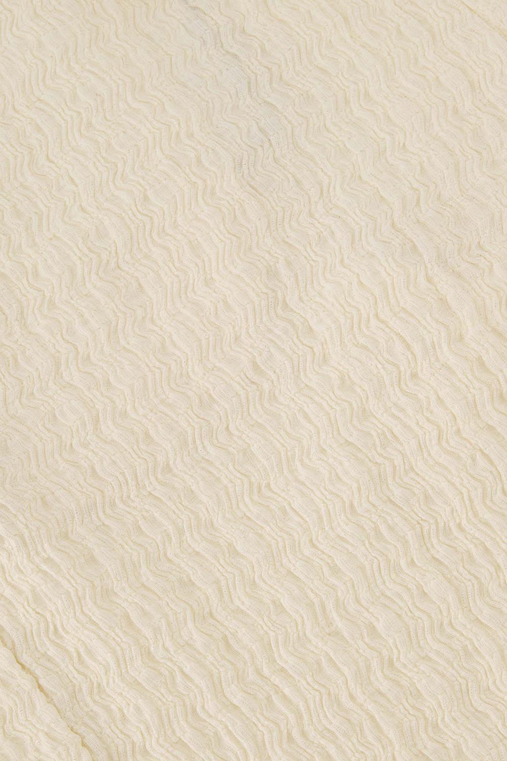Broek van Zusss met steekzakken aan de voorkant. Dit model heeft een elastische tailleboord en is allover gestructureerd.