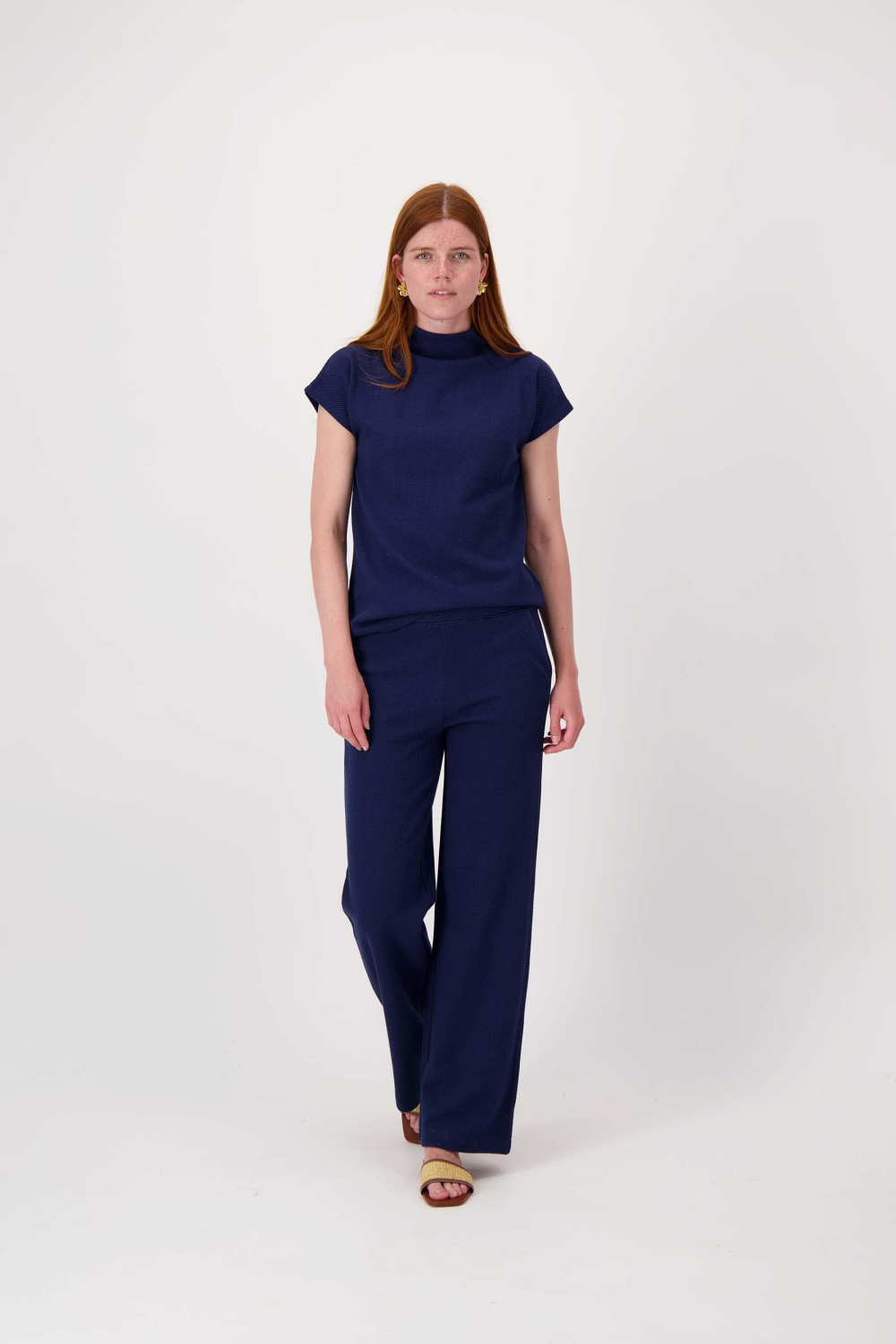 Deze navy broek van Zusss is een perfecte keuze voor het lenteseizoen. Met een comfortabele straight fit biedt de broek een elegante uitstraling die je dagelijks kunt dragen. De high waist zorgt voor een flatterend silhouet, terwijl de elastische boord bijdraagt aan de relaxte pasvorm. Het subtiele structuurpatroon geeft extra diepte en een verfijnde touch aan deze stijlvolle broek. Met praktische steekzakken is de Zusss broek zowel functioneel als modieus. Dit item is ideaal voor een casual dagje uit, maar kan ook gemakkelijk worden gestyled voor een informele werksetting. Draag deze broek met een lichtblauwe blouse of een effen T-shirt voor een moeiteloos chique look. Of je nu een lunchafspraak hebt met vrienden of een ontspannen wandeling maakt, deze broek houdt je comfortabel en trendy.