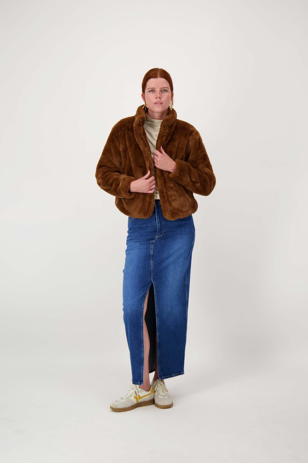 Deze casual jas van Zusss is een opvallende toevoeging aan je herfstgarderobe. Het kortere ontwerp in een warme middentint bruin combineert stijl met comfort, wat je direct merkt door de zachte teddy textuur aan de buitenkant. De jas heeft een regular fit en is volledig gevoerd met polyester, waardoor hij je heerlijk warm houdt op frisse dagen. De hoge kraag geeft extra bescherming tegen de wind en de drukknoopsluiting zorgt voor eenvoudig gemak. De steekzakken aan de zijkant zijn ideaal om je handen warm te houden of kleine spullen bij je te dragen.