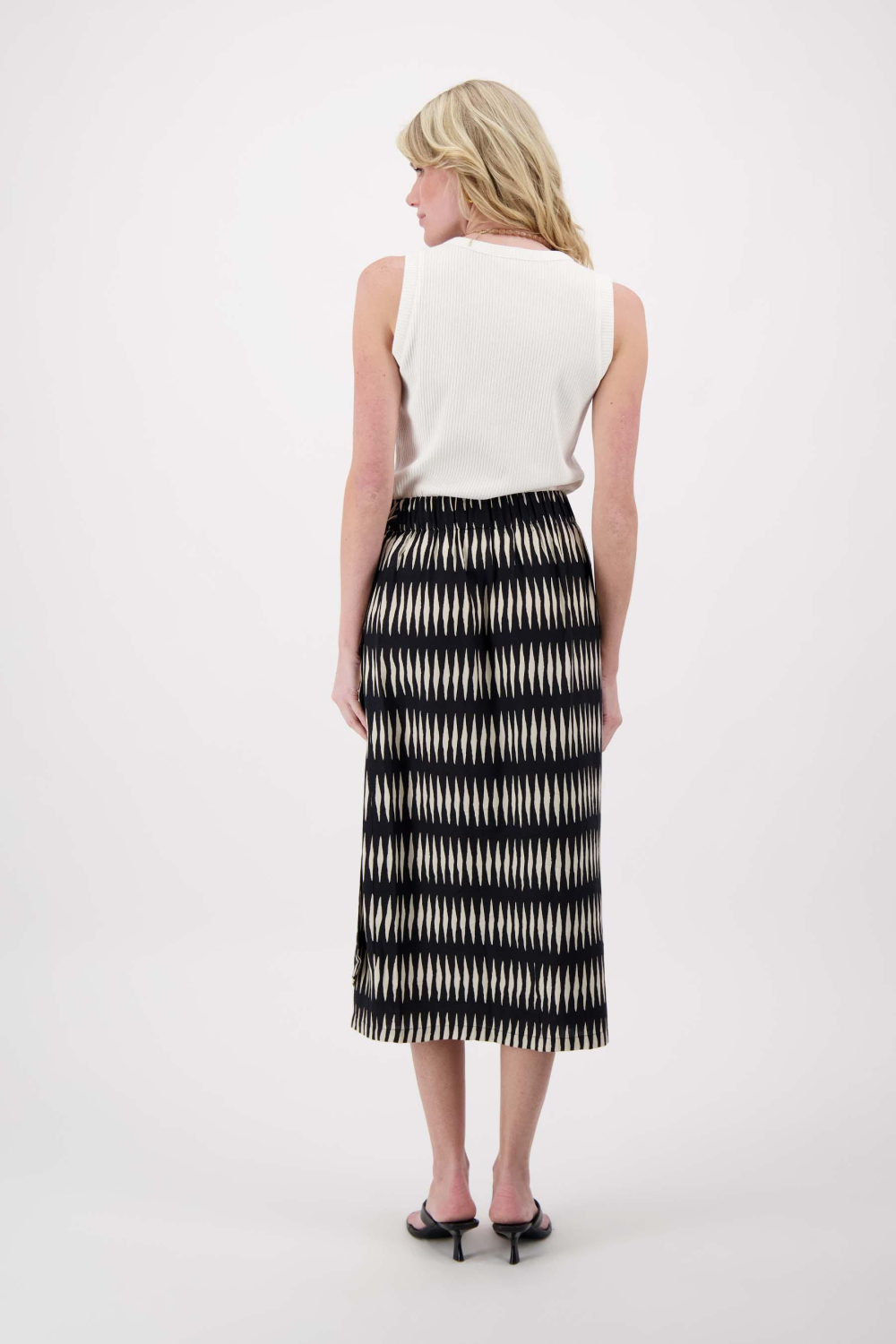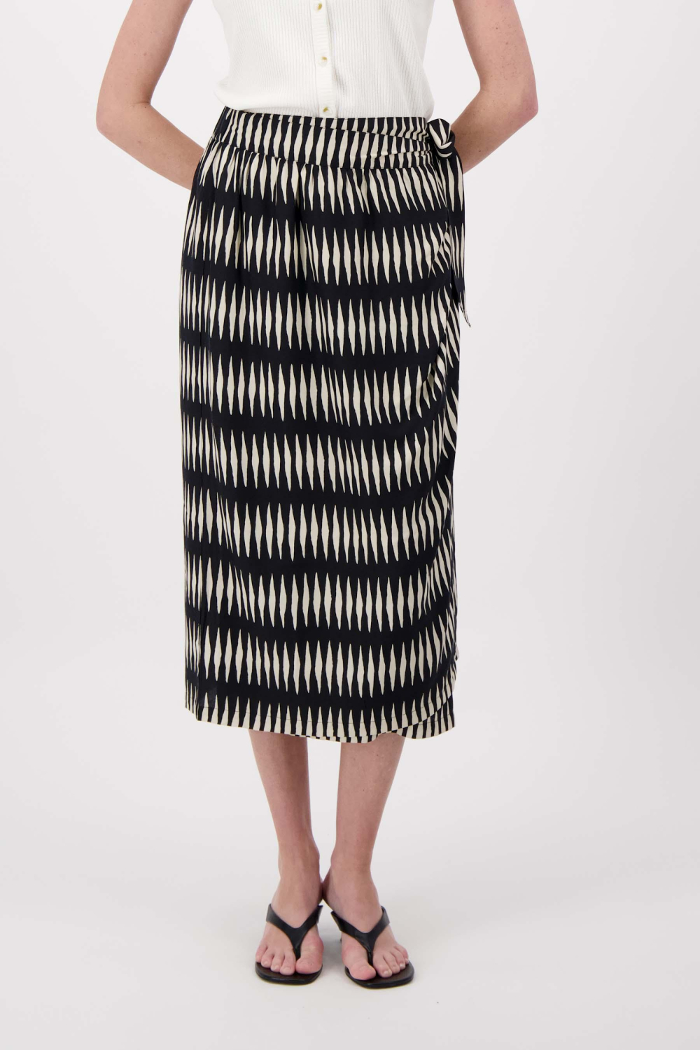 De Zusss rok is een elegante toevoeging aan je zomergarderobe. Gemaakt van 100% viscose, valt de rok soepel en luchtig langs je lichaam. Met een speels grafisch patroon en een strikkoord als sluiting, biedt deze rok een stijlvolle combinatie van comfort en flair. De regular pasvorm en regular waist zorgen ervoor dat je je de hele dag op je gemak voelt, of je nu een ontspannen dagje uit hebt of een informele bijeenkomst bijwoont. Dankzij de 7/8 lengte is deze Zusss rok perfect voor zonnige dagen en koele avonden. Je kunt hem gemakkelijk combineren met een eenvoudig topje en sandalen voor een casual look, of met een elegante blouse en hakken voor een iets formelere uitstraling. De rok past zich moeiteloos aan verschillende situaties aan, waardoor het een veelzijdig stuk in je kledingkast is. Het unieke patroon voegt een subtiel, doch onderscheidend element toe aan je outfit. Meer informatie: De totale lengte is 84 cm bij maat S.