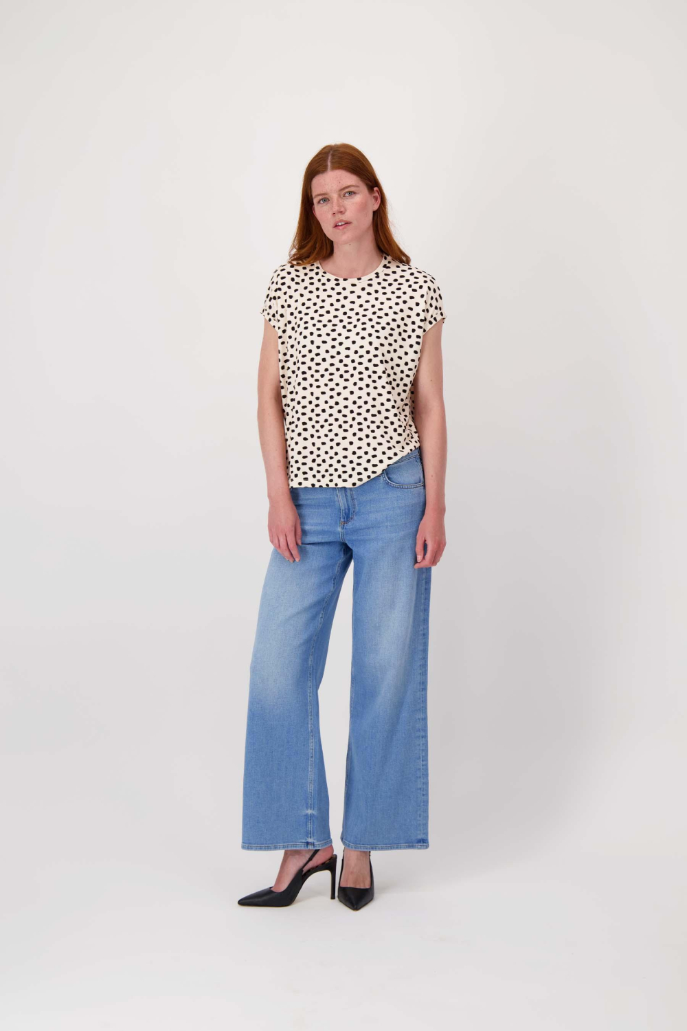 Dit casual T-shirt van Zusss is een veelzijdige toevoeging aan je lente-garderobe. Met een speels stippenpatroon in off-white en zwart, biedt het een frisse en eigentijdse look. Gemaakt van 96% viscose en 4% elastan, voel je direct de zachte en luchtige stof tegen je huid. De ronde hals en kapmouw geven het T-shirt een moderne uitstraling, perfect voor een relaxte dag in het park of een informele ontmoeting met vrienden. De regular fit pasvorm zorgt voor een comfortabele en flatterende look die bij verschillende lichaamstypes past. De normale lengte maakt het gemakkelijk te combineren met een jeans of een luchtige rok. Of je nu kiest voor een casual dagje uit of een spontane maaltijd met vrienden, met dit T-shirt creëer je moeiteloos een stijlvolle en ontspannen outfit. Voeg deze must-have van Zusss toe aan je collectie en geniet van de veelzijdigheid en het comfort dat het biedt.