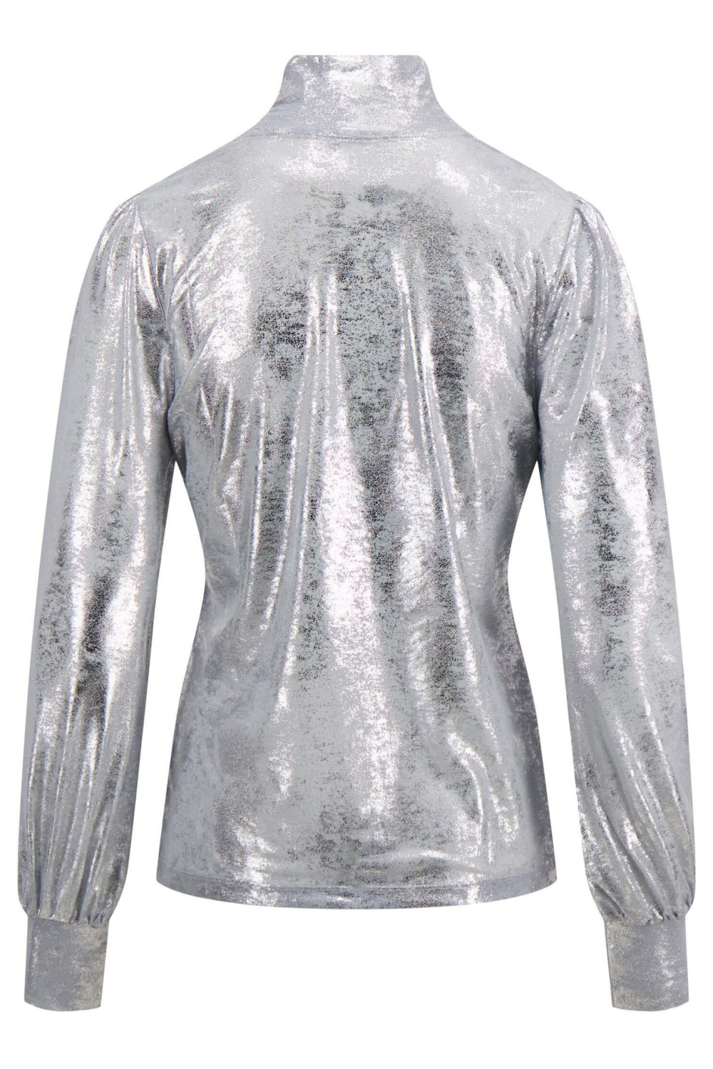 Dit opvallende zilveren T-shirt van Zusss is een stijlvolle keuze voor elke modieuze garderobe. De glinsterende stof met glitters geeft een elegante uitstraling die in het oog springt. De high neck en lange mouwen zorgen voor een comfortabele pasvorm die je warm houdt in het herfstseizoen. Gemaakt van een mix van 90% polyester en 10% elastan, biedt het T-shirt een lichte stretch voor extra draagcomfort.