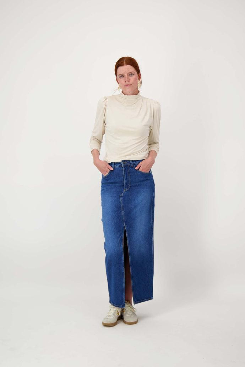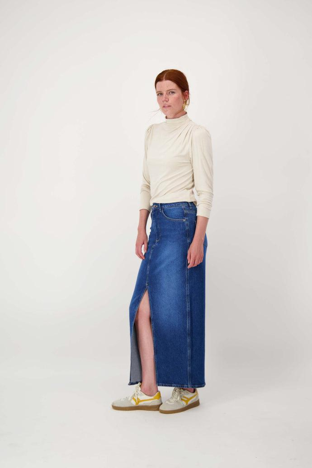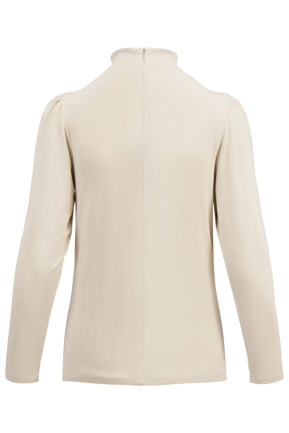 Dit veelzijdige dames T-shirt van Zusss biedt een chique uitstraling dankzij de hoge hals en elegante lange mouwen. Het shirt is vervaardigd uit 96% viscose en 4% elastan, wat zorgt voor een aangename pasvorm en subtiele rekbaarheid. De slim fit snit maakt dit T-shirt ideaal voor een nette casual look, perfect voor een dag op kantoor of een ontspannen middag met vrienden. De licht crèmekleurige tint, genaamd '1024 KIT', voegt een verfijnde touch toe die moeiteloos te combineren is met zowel donkere als lichte outfits. Het T-shirt is voorzien van een rits aan de achterzijde, wat niet alleen praktisch is maar ook zorgt voor een gestroomlijnd silhouet. De subtiele plooien op de schouders geven het geheel een zachte, vrouwelijke uitstraling. Dit kledingstuk is een uitstekende keuze voor het herfstseizoen, waarbij het je warm houdt zonder in te boeten aan stijl. Combineer het bijvoorbeeld met een jeansrok en sneakers voor een modieuze, yet comfortabele outfit. Perfect voor zowel dagelijkse activiteiten als informele bijeenkomsten.