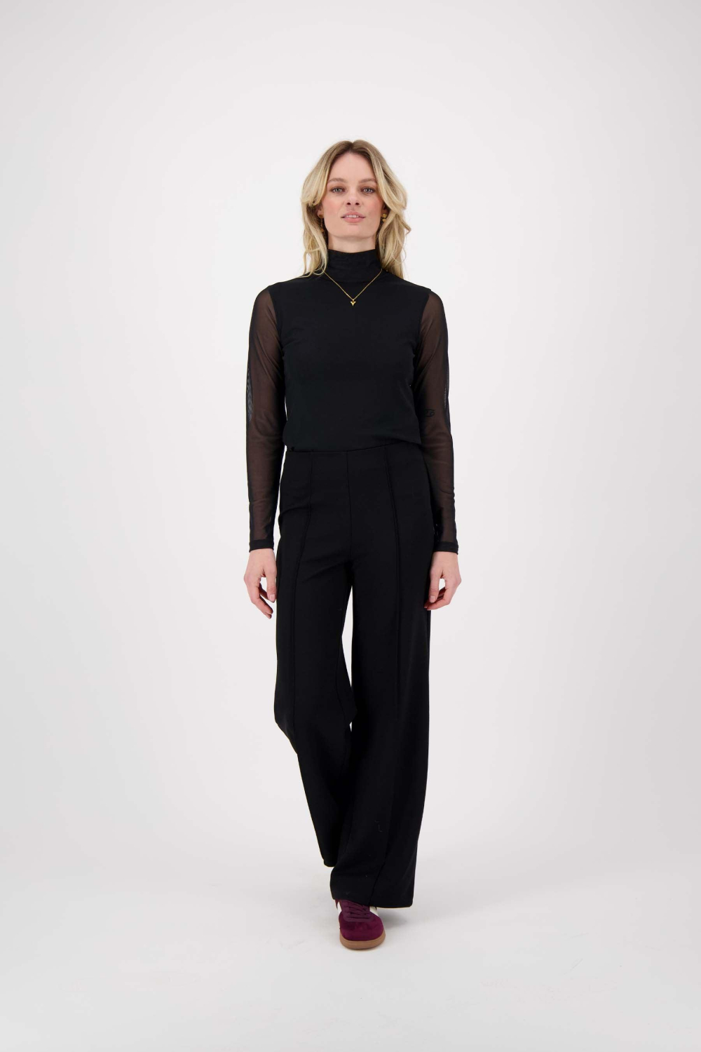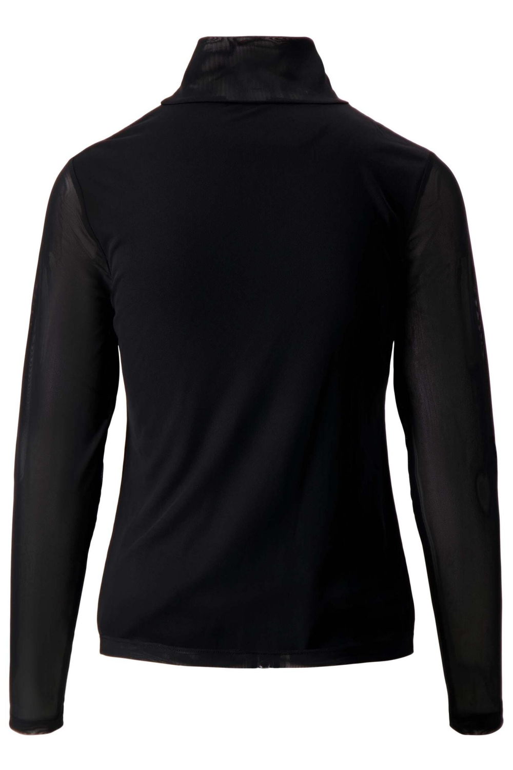 Dit zwarte T-shirt van het merk Zusss is een ideale toevoeging aan je wintergarderobe. Met een regular fit en een trendy colkraag straalt dit T-shirt een casual stijl uit. De lange mouwen zijn gemaakt van doorschijnend materiaal, wat een speelse en elegante look geeft. Het T-shirt bestaat uit 96% polyester en 4% elastan, wat zorgt voor een comfortabele pasvorm die mooi aansluit. De stijlvolle zwarte tint maakt het gemakkelijk te combineren met verschillende outfits, van een nette broek tot een casual jeans. Of je nu een dag op kantoor doorbrengt of een avondje uit gaat, dit T-shirt biedt de perfecte balans tussen stijl en comfort. Dankzij de normale lengte is het veelzijdig te dragen en voegt het een verfijnde touch toe aan elke look. Dit T-shirt van Zusss is een must voor elke modebewuste vrouw.