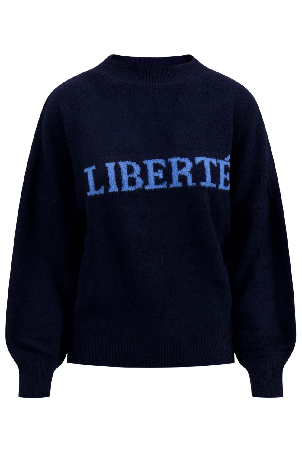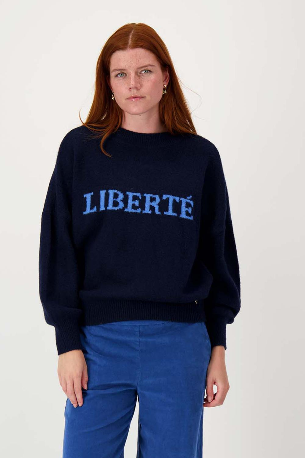 Deze stijlvolle navy trui van Zusss valt direct op door de opvallende tekst 'LIBERTÉ' in sportief blauw op de voorzijde. Met een fijne samenstelling van 68% acryl, 28% polyester en 4% elastan, biedt deze knitwear voor dames veel draagcomfort en flexibiliteit. De regular fit en ronde hals zorgen voor een relaxte, maar toch moderne uitstraling. Ideaal voor een herfstige dag, wanneer je een laagje extra warmte kunt gebruiken.