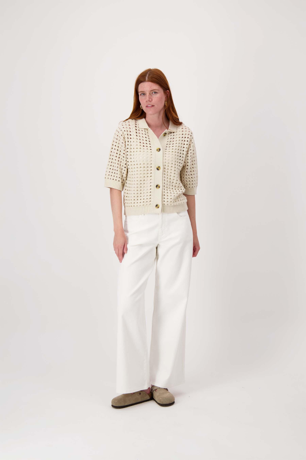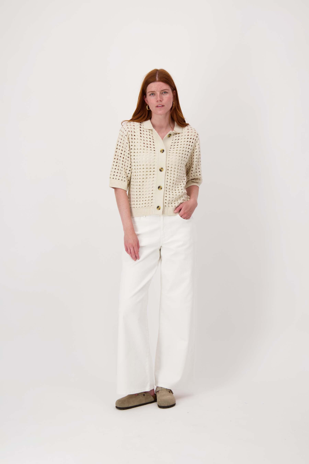 Dit Zusss knitwear vest is een stijlvolle toevoeging aan je lentegarderobe. Gemaakt van 100% biologisch katoen, biedt het een comfortabele en eco-vriendelijke keuze. De ajourpatroon zorgt voor een luchtige, moderne uitstraling die perfect past bij de zonnige lentedagen. Met een regular fit pasvorm en een puntkraag, straalt dit vest zowel eenvoud als elegantie uit. De knoopsluiting met elegante knopen voegt een subtiel detail toe dat het geheel verfijnt. Met zijn neutrale kitkleur en 3/4 mouwlengte, is dit vest ideaal voor zowel casual als meer formele gelegenheden. Draag het over een zomerse jurk of combineer het met een paar jeans voor een relaxte, maar stijlvolle look. Of je nu een dag op kantoor hebt of een middagje uit gaat met vrienden, dit vest biedt veelzijdigheid en comfort in één. De duurzame materiaalkeuze maakt het bovendien een bewuste en verantwoorde mode-optie.